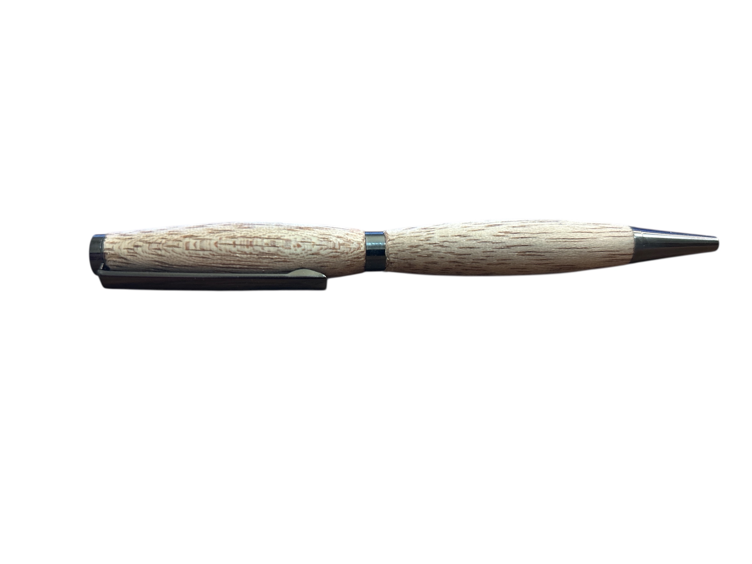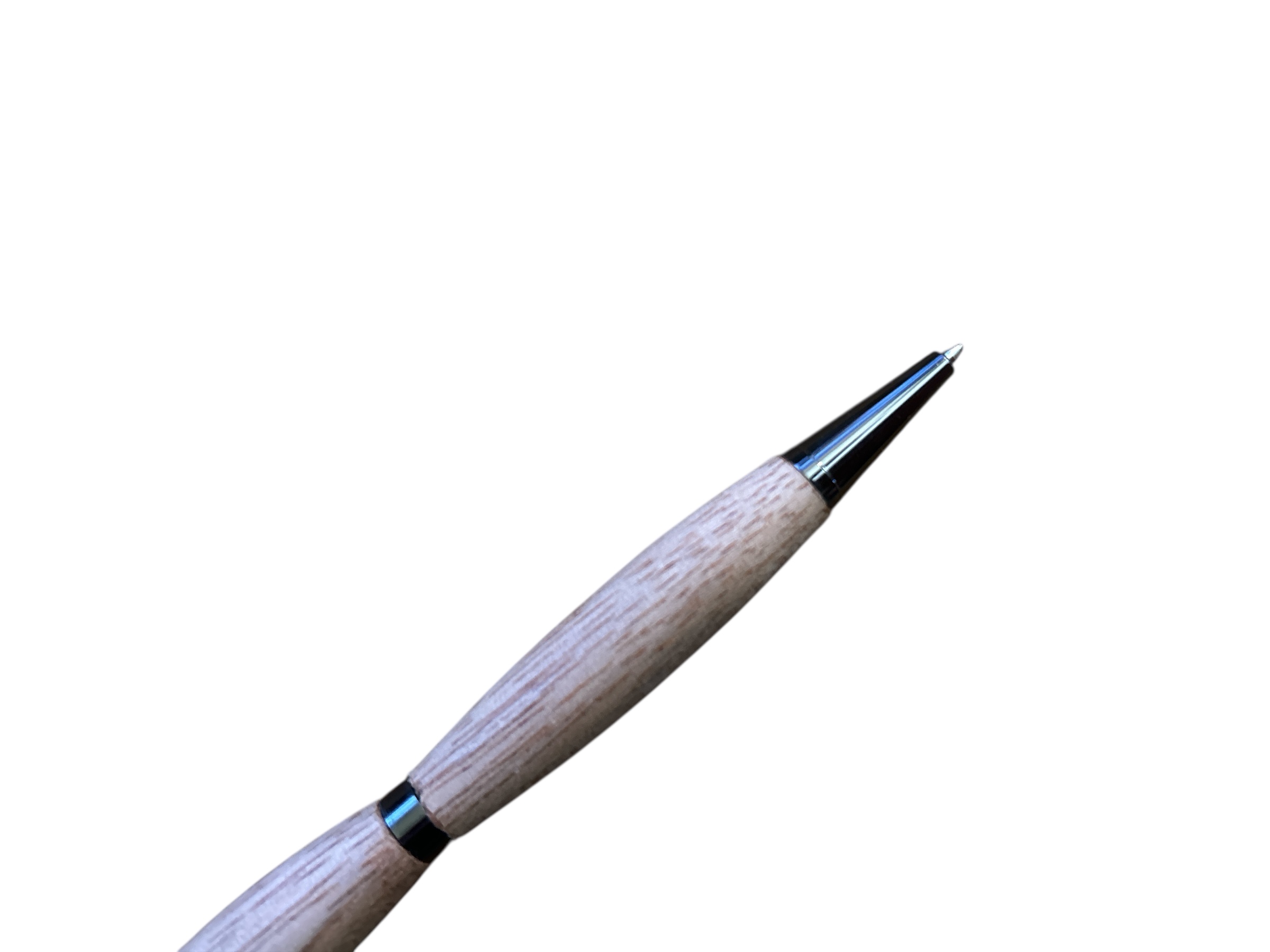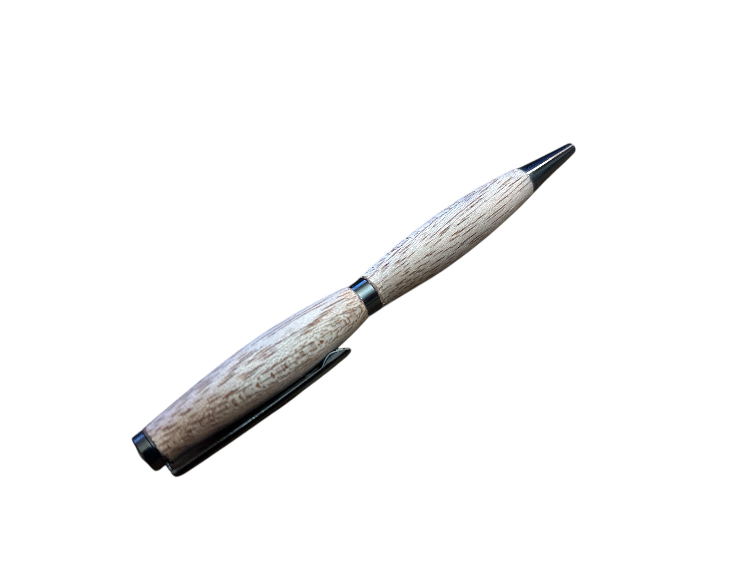 Handgedrechselter Dreh-Kugelschreiber mit matt-schwarzen Metallteilen.