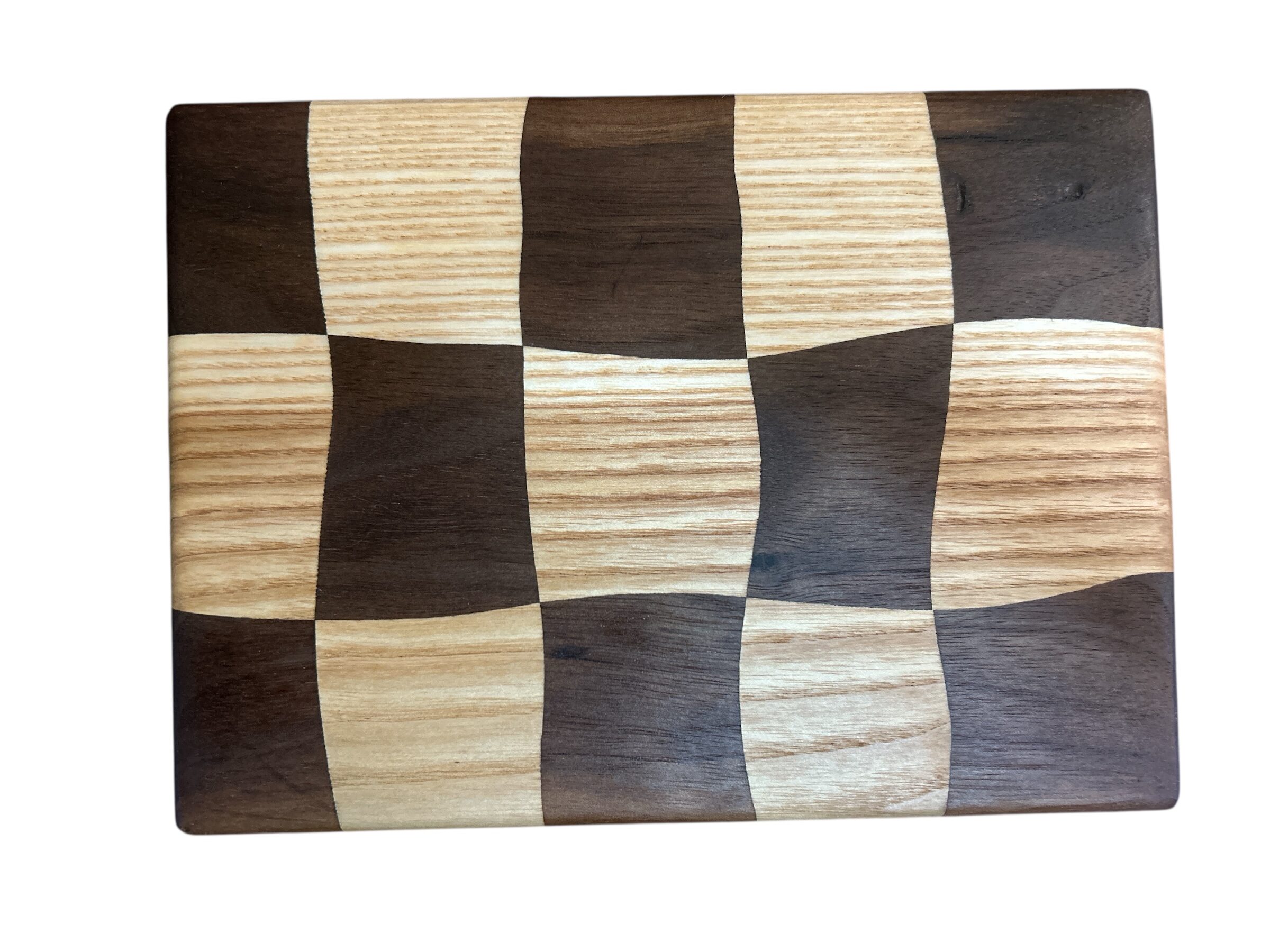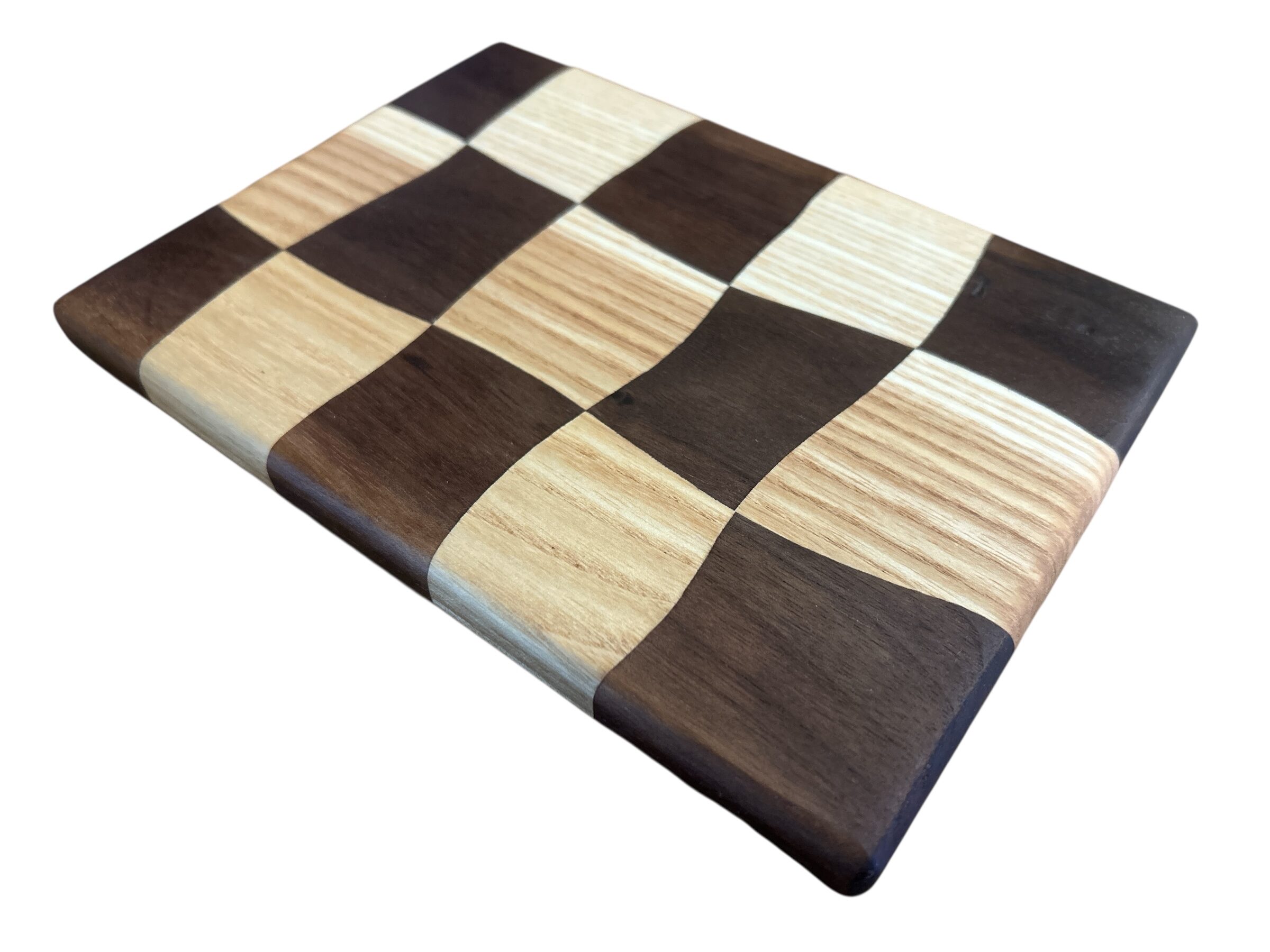 Dieses „Betrunkene Schachbrett“ wurde aus amerikanischer Walnuss und Esche gefertigt.