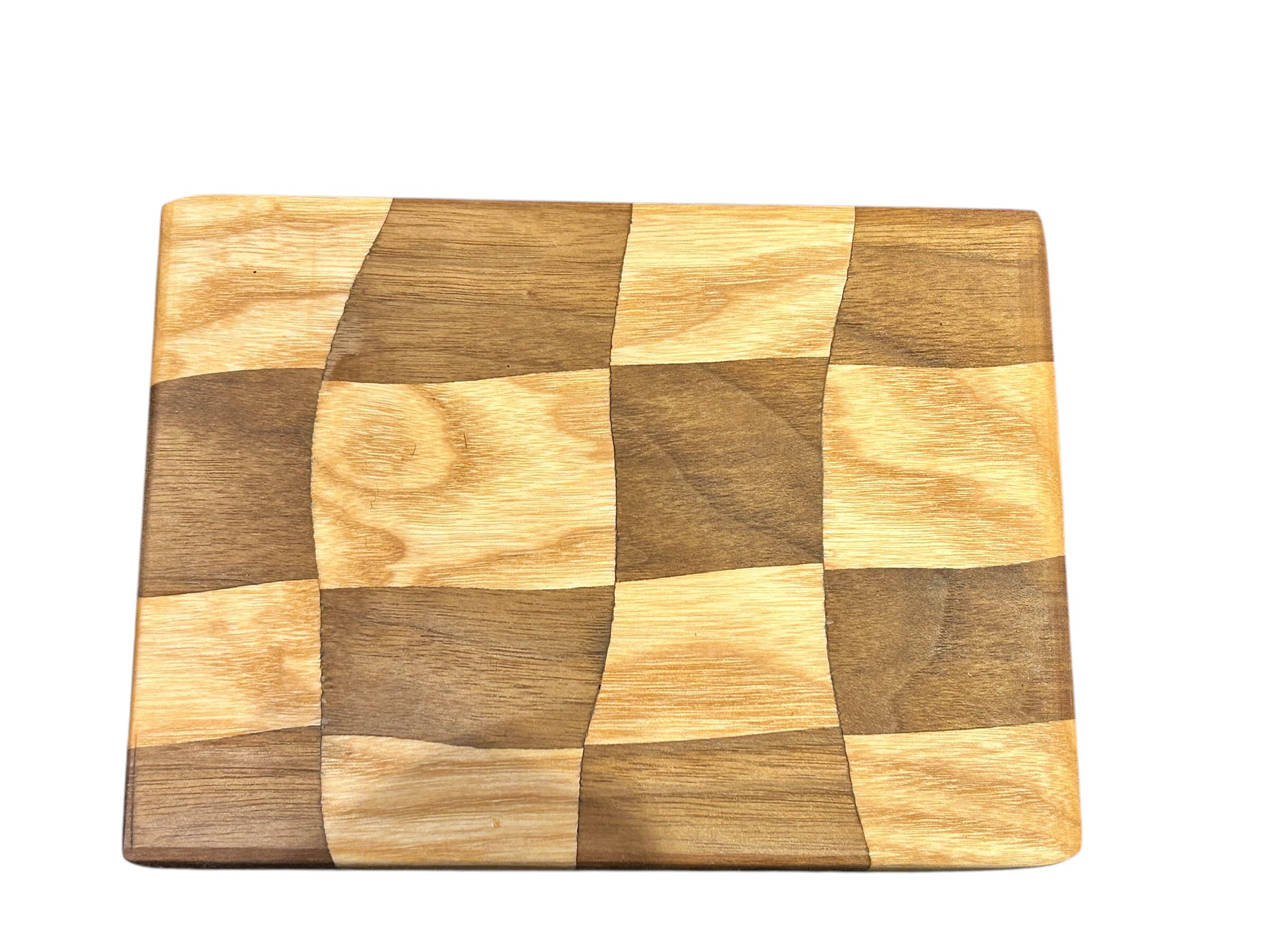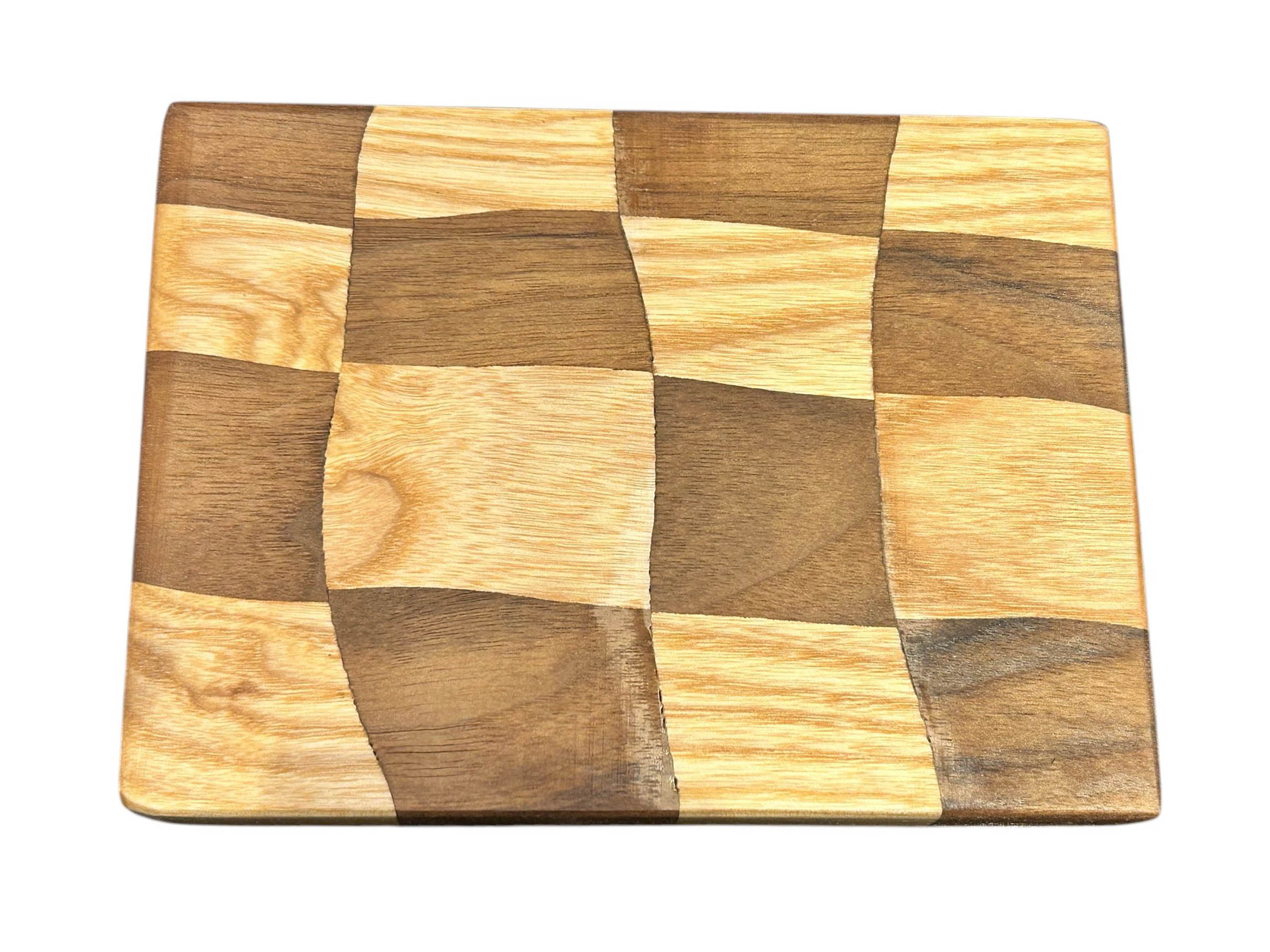 Dieses „Geschwungene Schachbrett“ wurde aus amerikanischer Walnuss und Esche gefertigt.