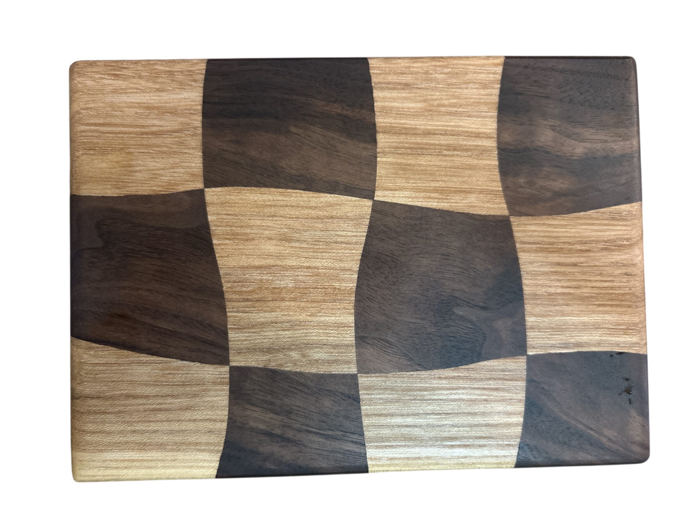 Dieses „Betrunkene Schachbrett“ wurde aus amerikanischer Walnuss und Ulme gefertigt.