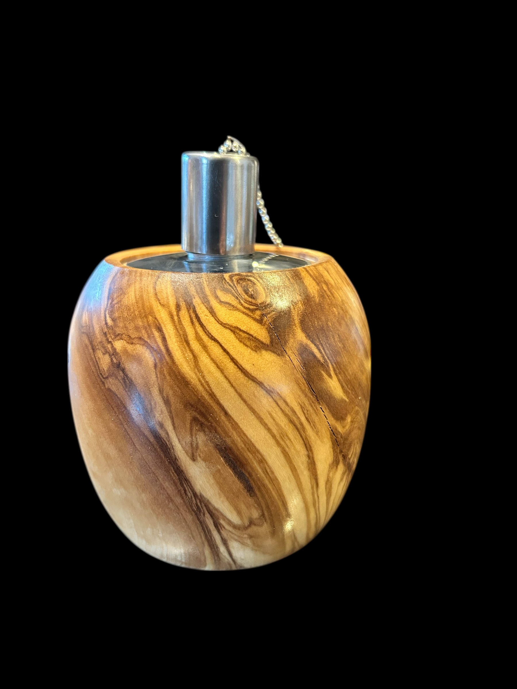 Diese Öl-Lampe aus edlem Olivenholz wird der Hingucker auf Ihrem Gartentisch!